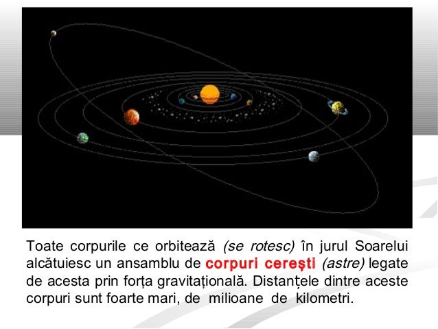 Majoritatea planetelor din sistemul solar se rotesc în aceeași direcție cu care orbitează soarele. Unele planete au mai mulți sateliți jupiter are 12 saturn 10 uranus 5 marte și neptun câte 2. Din moment ce noi trăim pe pământ şi vedem cum obiectele cosmice se deplasează în jurul pământului de a lungul unor traiectorii circulare zi de zi a fost firesc să se presupună că pământul se află în centrul universului.